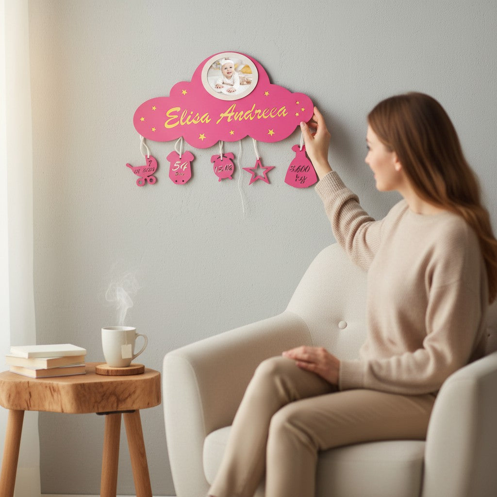 Lampă de veghe personalizată – model norisor cu LED și date naștere