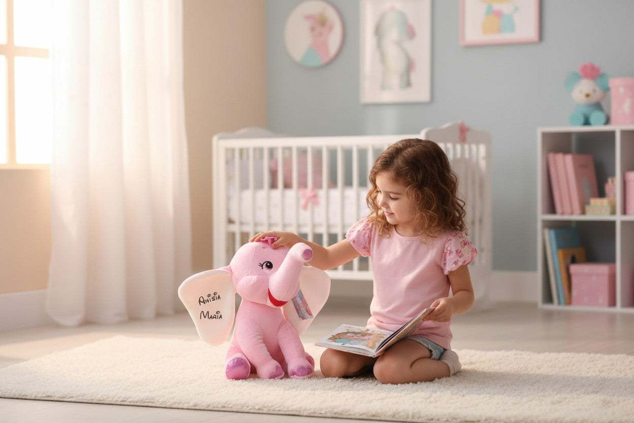 Elefant de Pluș Personalizat cu Nume – Coronită Argintie, 32cm (Roz/Albastru)